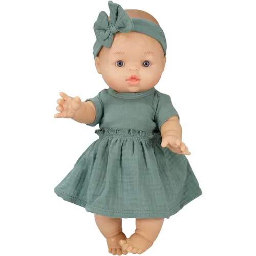Puppenkleid aus 100 % Bio-Baumwolle mit Rüschen und Haarband, salbeigrün, 2-teilig, Gr. 28-35 cm